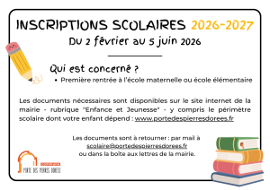 Une fois le dossier complété, vous pouvez le retourner par mail à scolaire@portedespierresdorees.fr ou le déposer en mairie (y compris en boîte aux lettres).